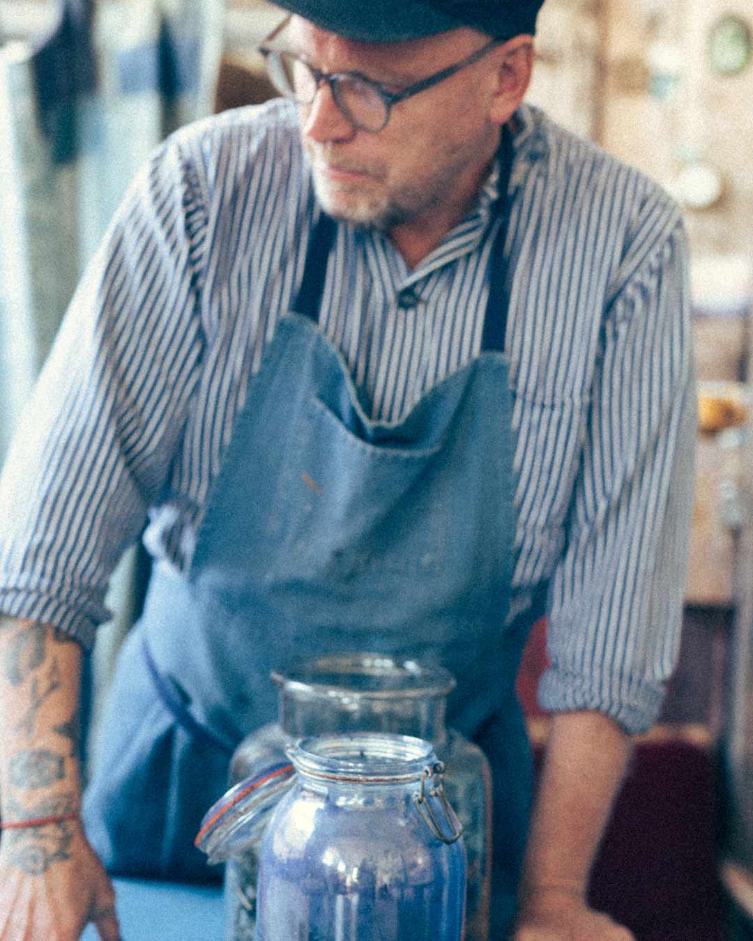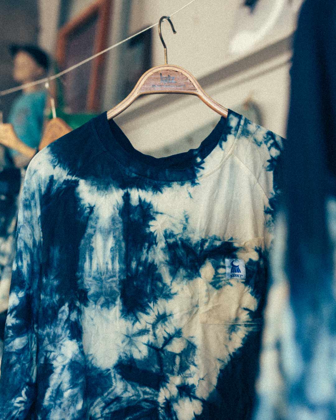 Limiterad upplaga av handfärgade longsleeves i ekologisk bomull där varje tröja har ett unikt mönster. Färgade med naturlig indigo, utan kemikalier av Dyeforindigo Studio för Kärret®.